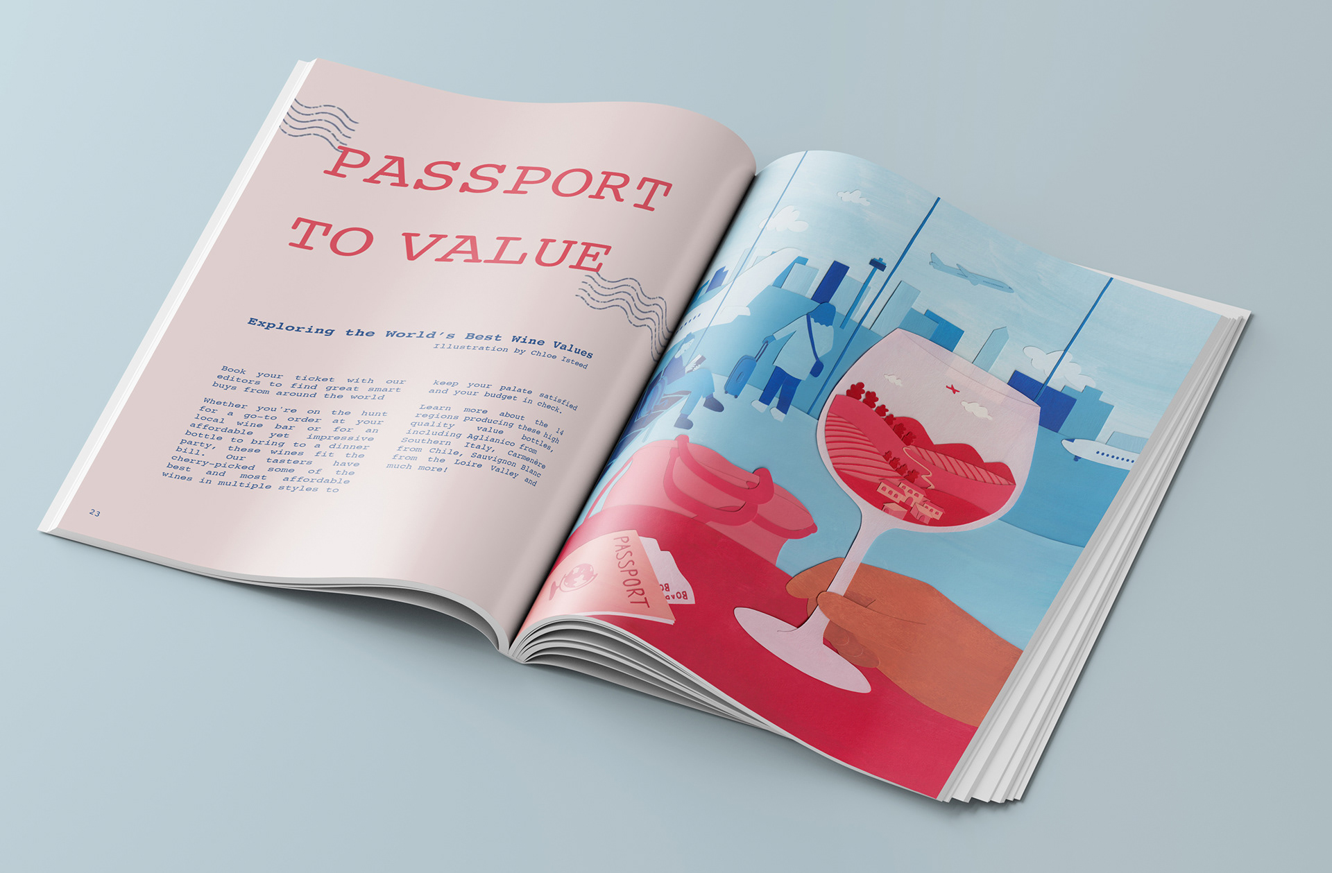 A self initiated illustration to accompany an existing article from The Wine Spectator, exploring the best-value wines from around the world, highlighting the diversity, quality, and stories behind global wine regions.
