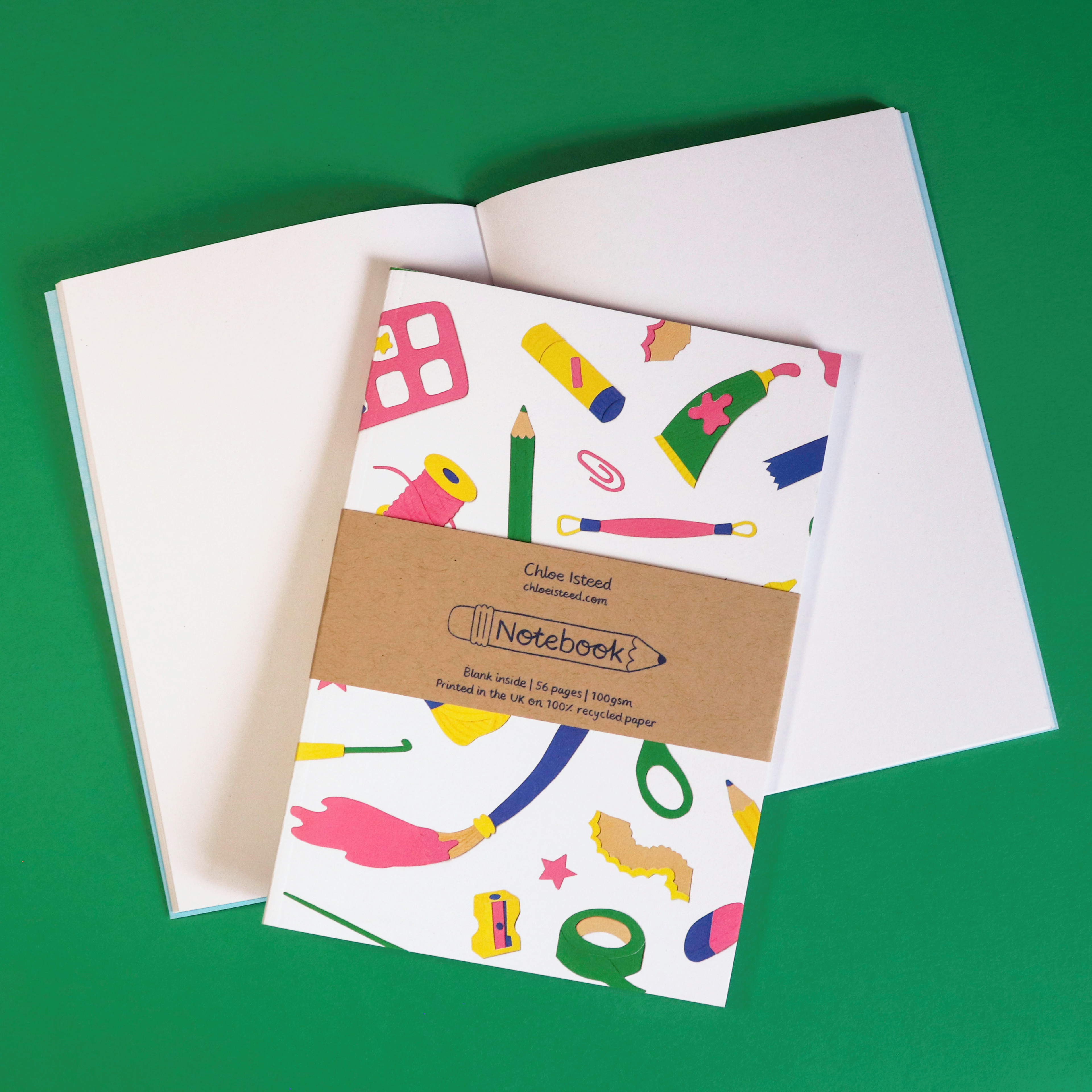 Surface pattern designs for notebook covers, entitled Creative Tools, Tulips and Tulip Ballet