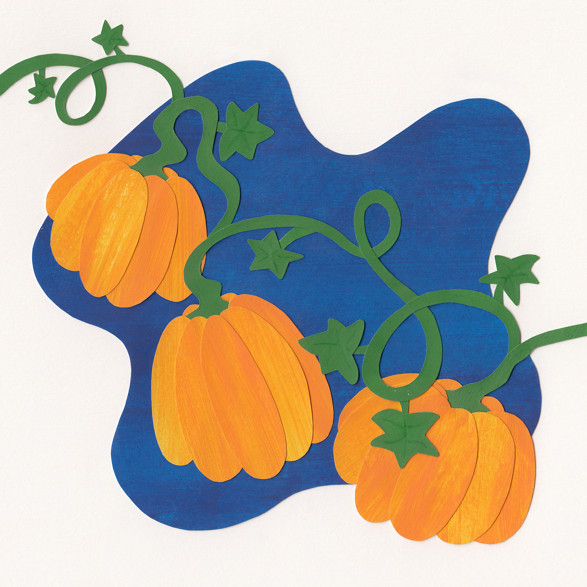 A spot illustration celebrating the Autumn season - pumpkins growing in lines on twisted vines